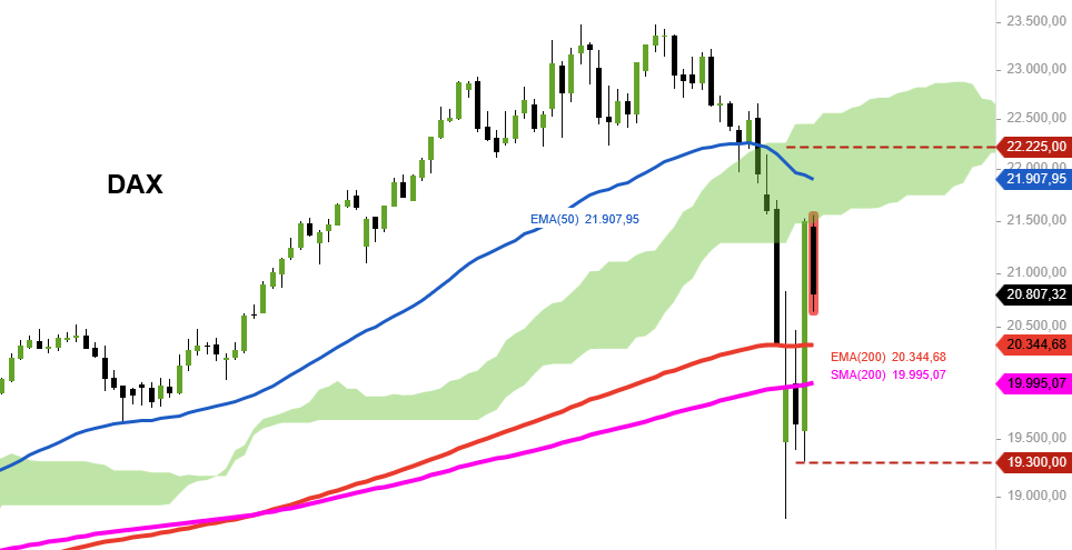 Dün Alman borsa endeksi de yukarı yönlü tepki verdi.Şimdi dünün düzeltmesinde lakin DAX yukarıda 22.225 puan ve aşagıda 19.300 puan arasında seyrettikce bir caçık olmaz ne taraf kırılırsa yön otarafa daha hızlı gidecektir.