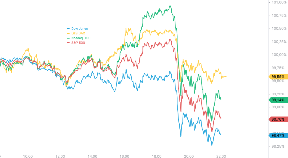Dow Jones endeksi yüzde 1,91’lik kayıpla 41.860 puandan kapandı. S&P 500 endeksi yüzde 1,62 düşüşle 5.844 puana geriledi. Nasdaq 100 endeksi nispeten hafif bir düşüşle “sadece” yüzde 0,96 düşüşle 21.080 puana geriledi.