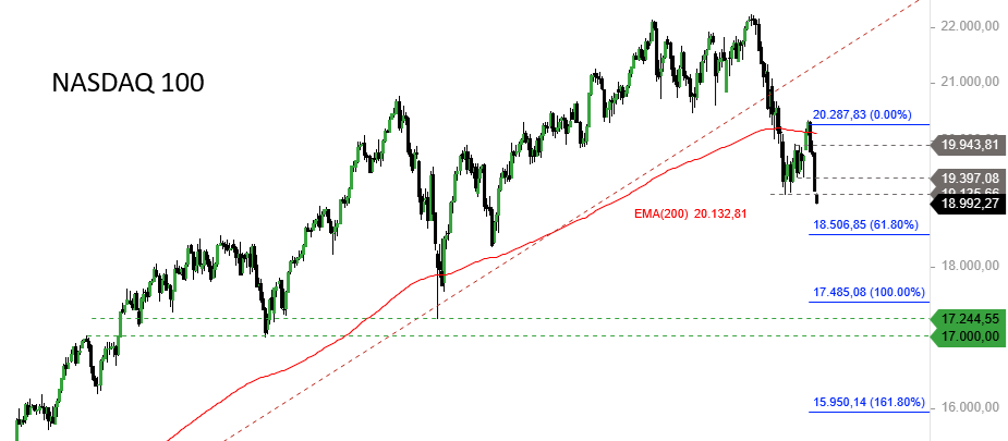 Nasdaq 100’ün 19 bin puanın altına inmesi durumunda satışlar daha da yoğunlaşabilir.